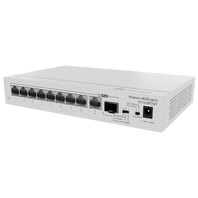 Der eKitEngine S110-8P2ST ist ein vielseitiger und leistungsstarker Gigabit-Switch, der ideal für den Einsatz in kleinen bis mittleren Unternehmensnetzwerken geeignet ist. Mit seinen acht 10/100/1000BASE-T-Ports, einem GE SFP-Port und einem zusätzlichen 10/100/1000BASE-T-Port bietet dieser Switch flexible und zuverlässige Netzwerkverbindungen. Dank der PoE+ Unterstützung ist er perfekt für den Einsatz in Netzwerken geeignet, die eine einfache Stromversorgung für PoE-fähige Geräte wie IP-Kameras, VoIP-Telefone und Access Points benötigen.