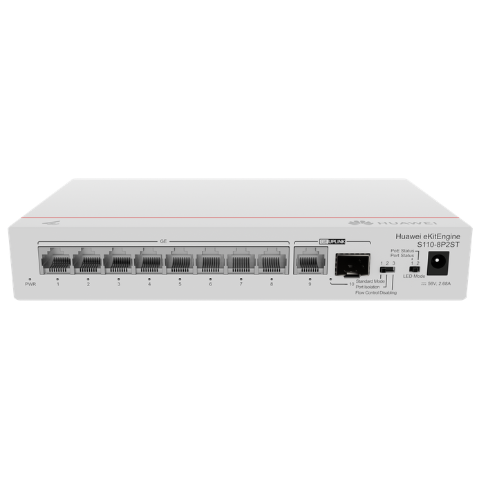 Beschreibung | S110-8P2ST (810/100/1000BASE-T Ports, PoE+, 1GE SFP Port, 1*10/100/1000BASE-T Port, AC-Netzteil, Netzadapter) |